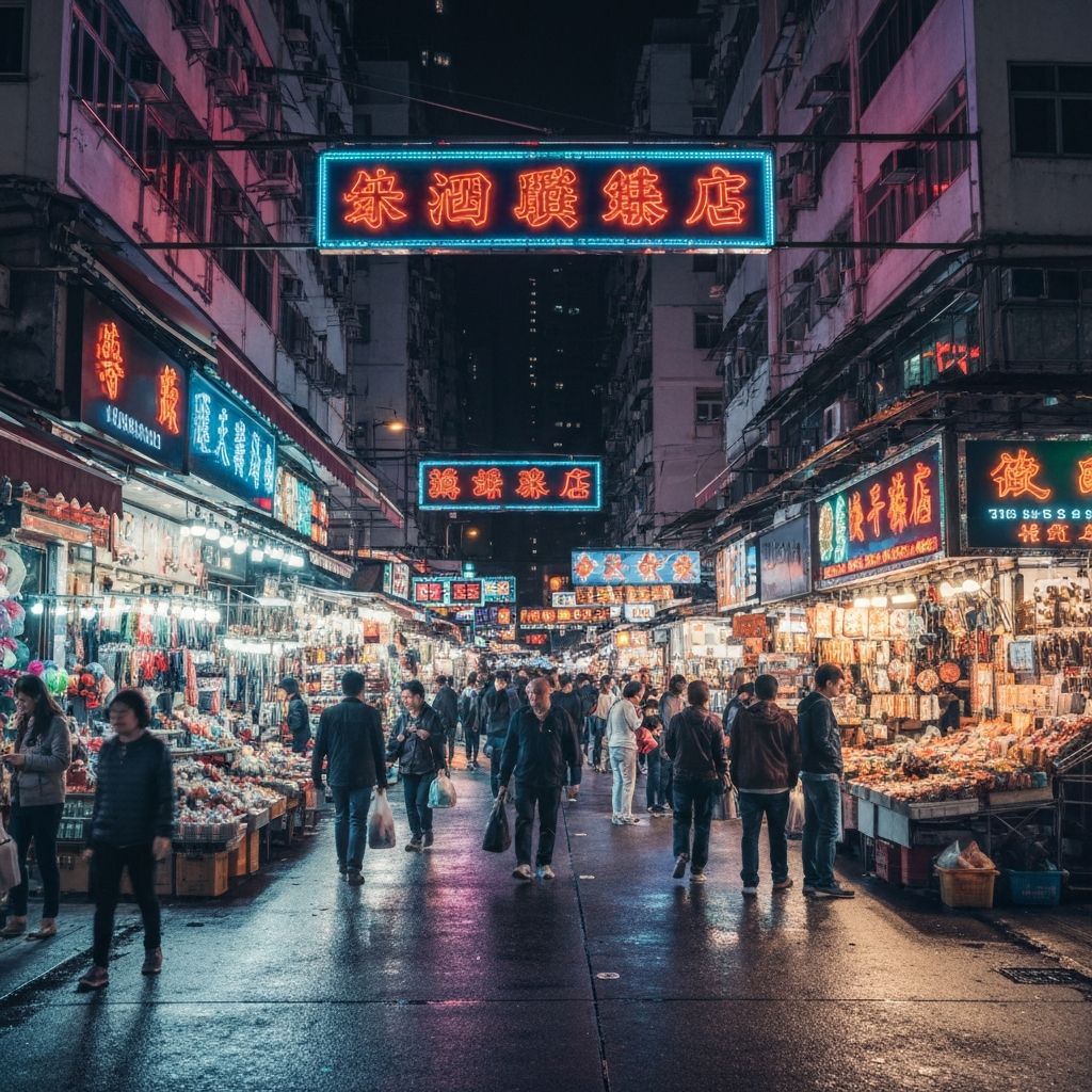 Bustling night market in Kowloon offering street food, fortune tellers, live Cantonese opera, and endless shopping for souvenirs, electronics, and clothing.
